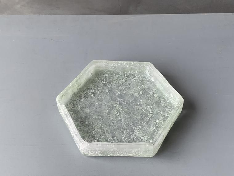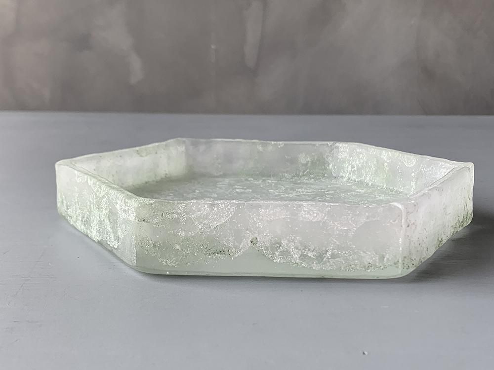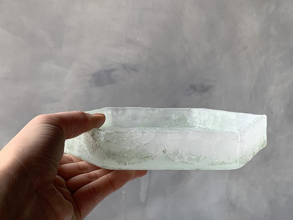 氷の塊のような、パート・ド・ヴェールという技法で作られるガラスのお皿。