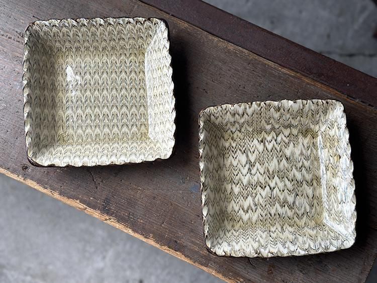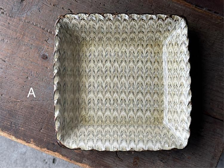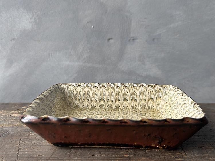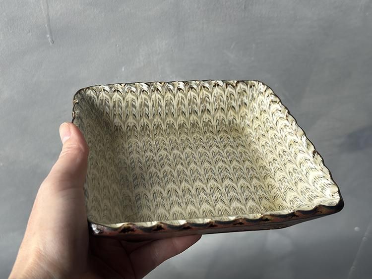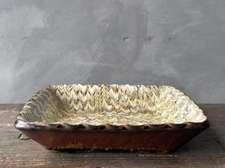 *スリップウェア:クリーム状の化粧土を筆やスポイト状の道具を用いて装飾した器