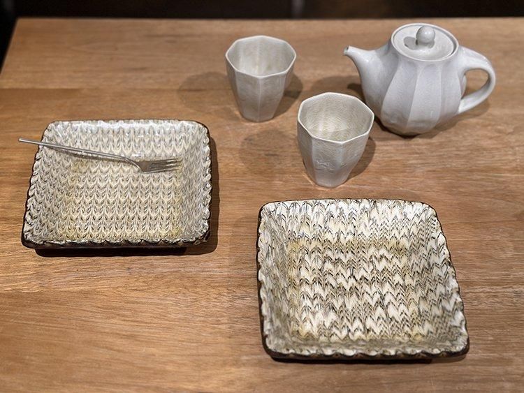 伊藤丈浩さんの繊細な模様が魅力的なスリップウエア。