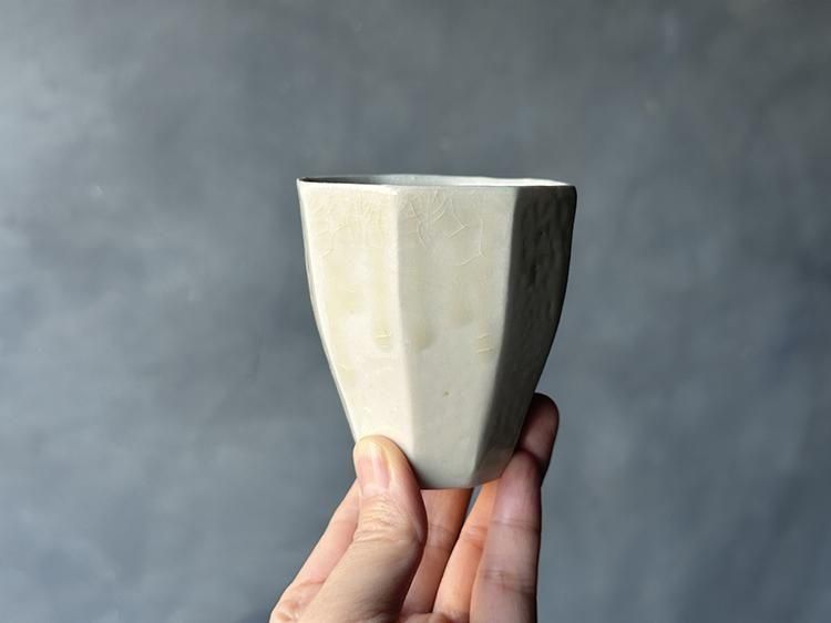 伊藤叔潔さんの白磁の小ぶりな面取りカップ。