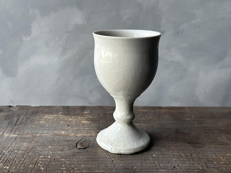 貫入がくっきり現れた部分とそうでない部分が見られ、なんとも味わい深いゴブレットです。