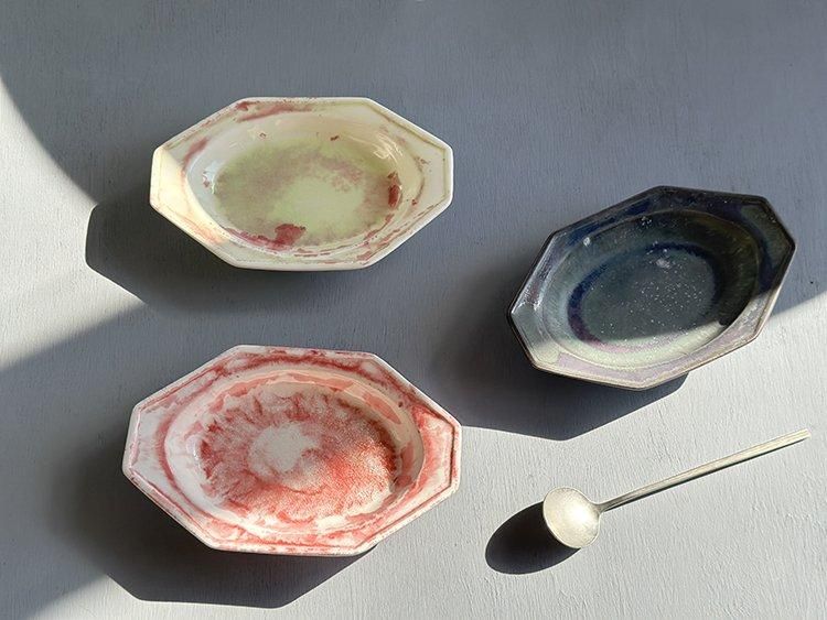 器の表面に凹凸、ピンホール(小さい穴)、石はぜ(小石が浮いているもの)、釉薬の抜け、とびなどがあることもございます。これらも器の景色としてお楽しみくださいませ。