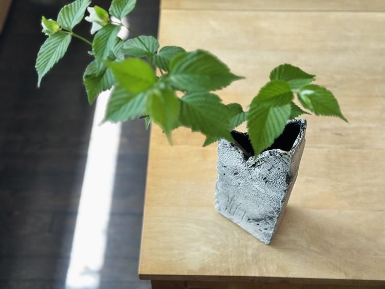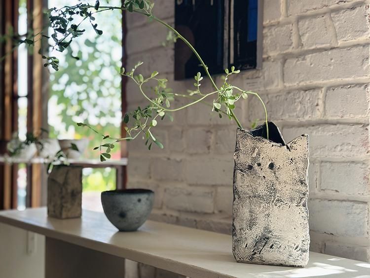 岩肌のような自然美も感じる佇まいの一点ものの花器。