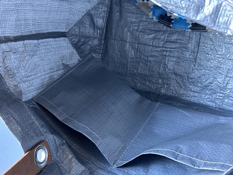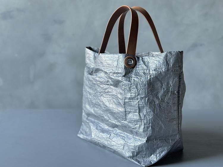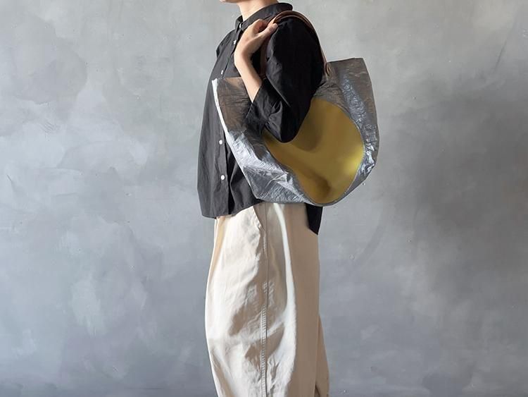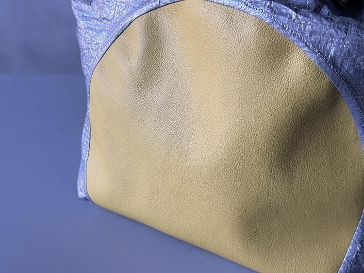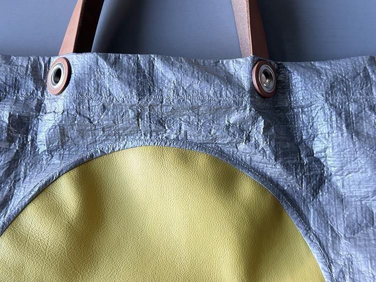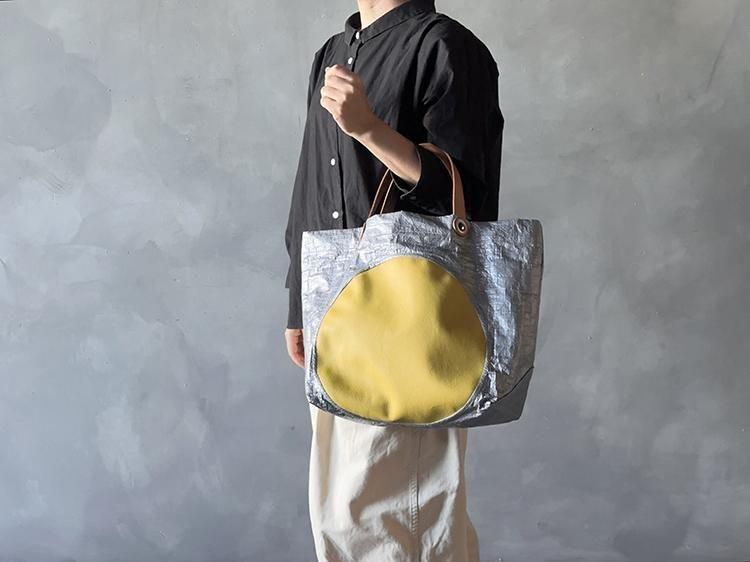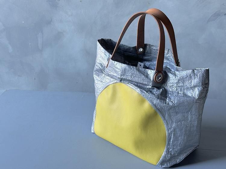 素材:(本体)シルバービニールシート(持手/パッチワーク)ヌメ革/黄色革