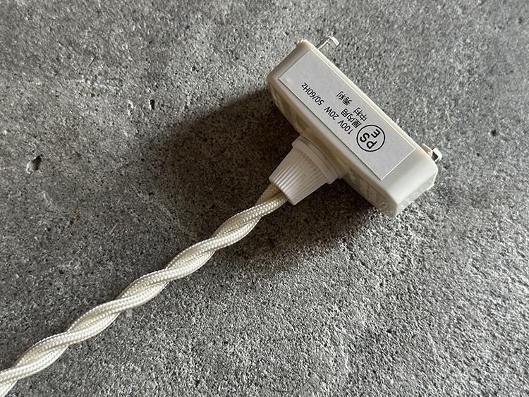 使用するコードの色も空間になじむこと、灯り本体の色と似合うことを考えて取り付けられています。