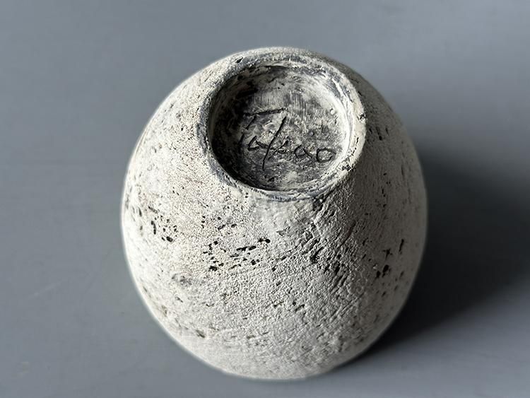 掻き落としたような跡、塗り重ねた跡、ところどころ表面に現れる石粒など、多彩な表現に思わず魅了される二つとない作品。
